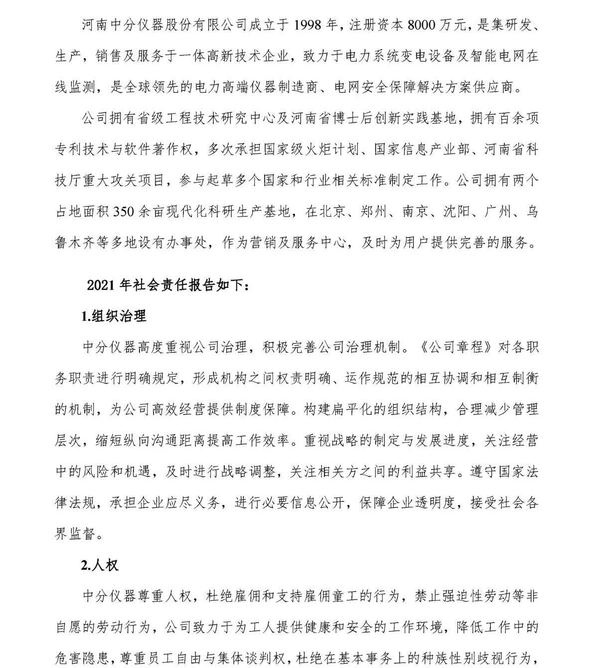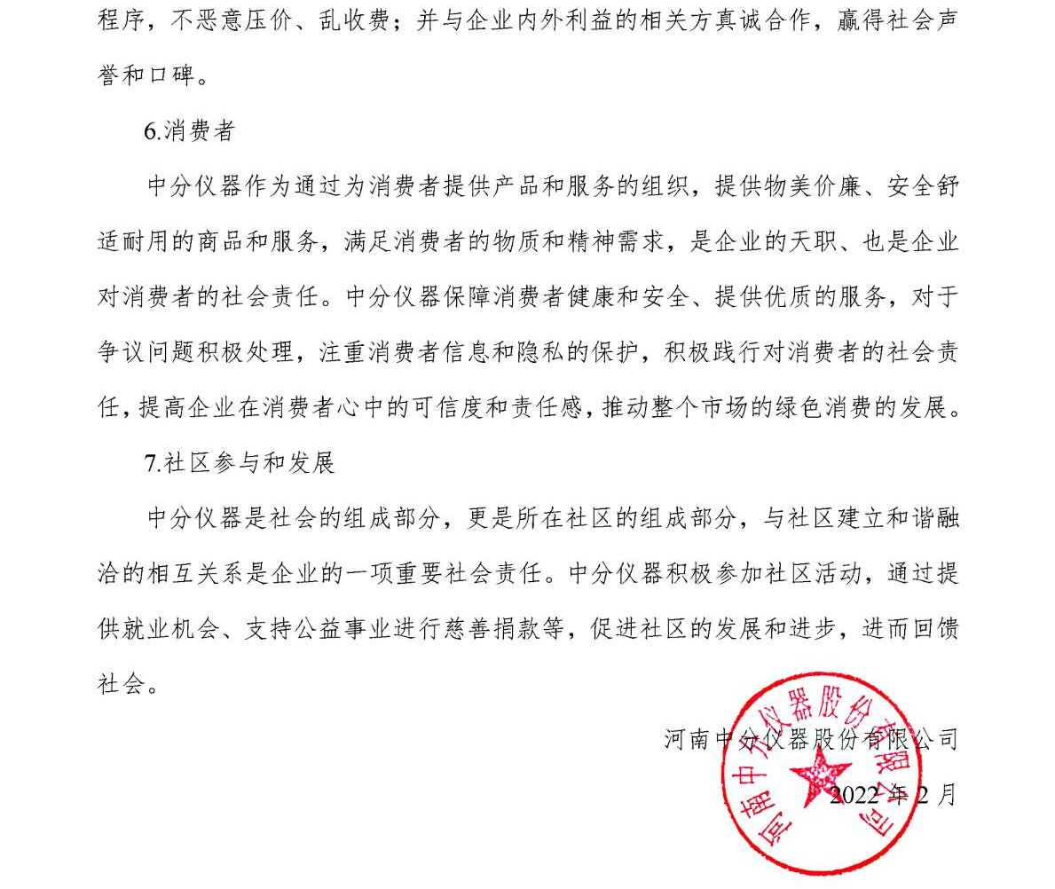 河南中分儀器股份有限公司2021年企業社會責任報告